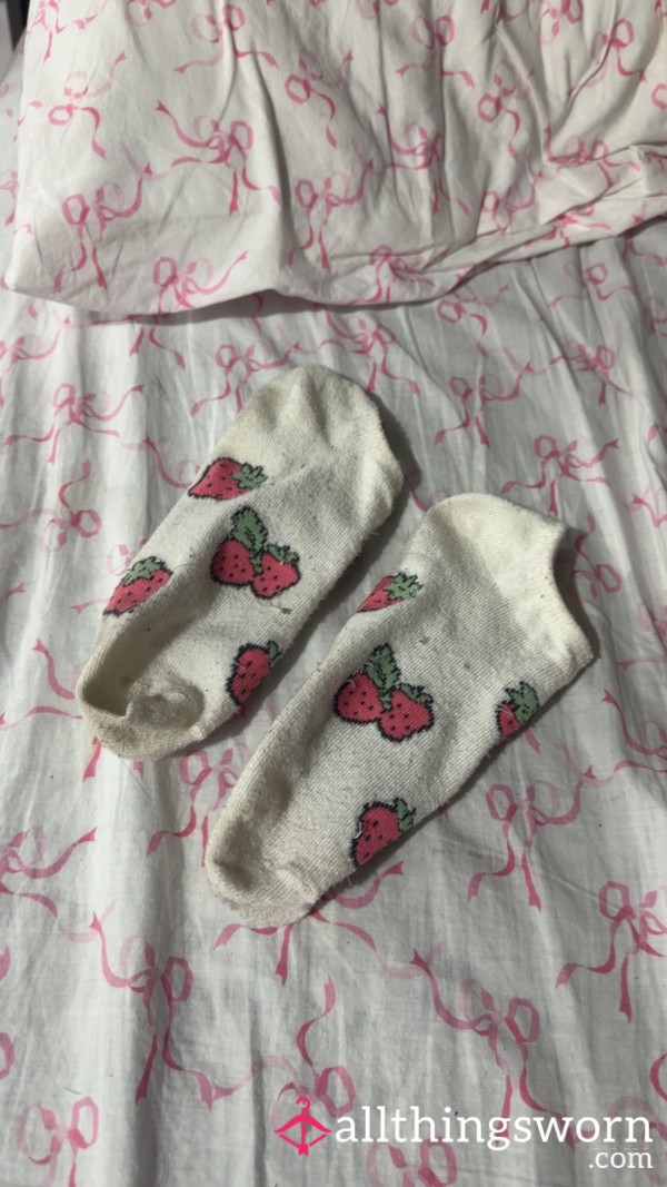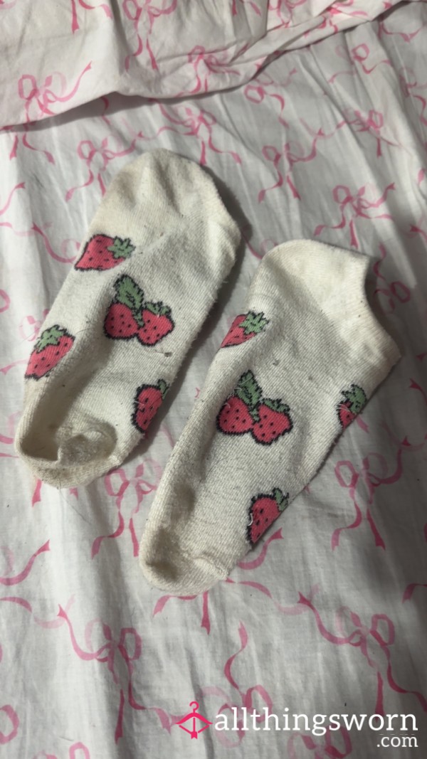 A pair of already dirty white socks. Worn for work so are also sweaty and smelly, waiting for...