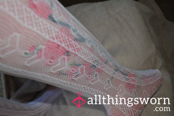 6 Available Lace Knee High Socks - Black, White - Lightly Worn (6-12 Hours)