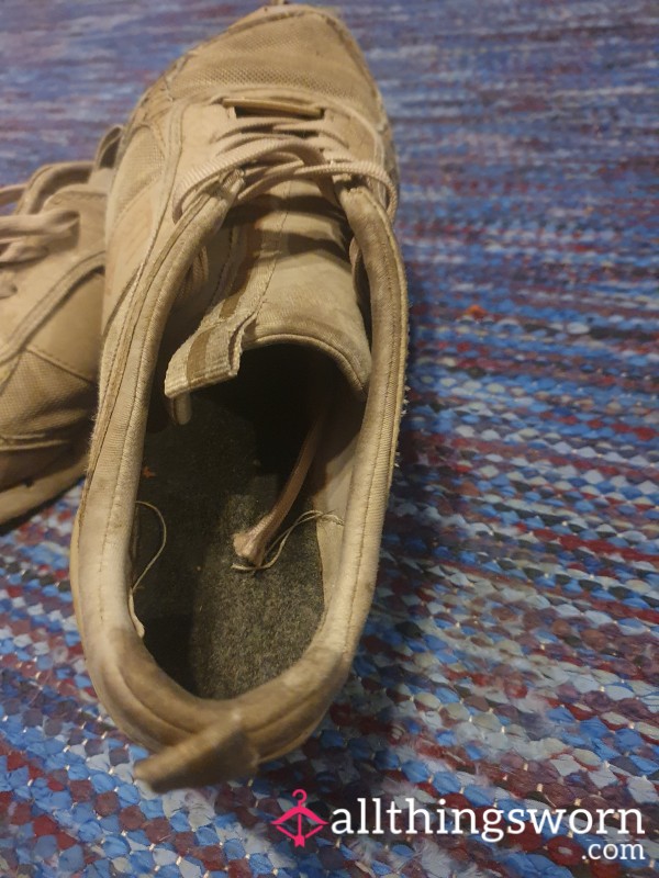 5 photos of me and my feet wearing the shoes you just purchesed Beige colour with beautiful armani markings