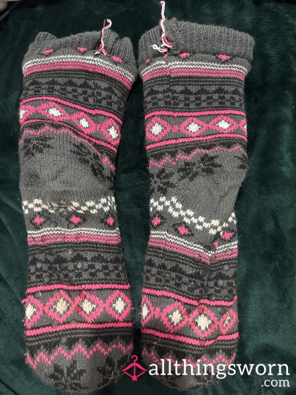 Soft, warm, and cosy…my fluffy Aztec-print slipper socks have been worn and loved, carrying all the scent and warmth 😏