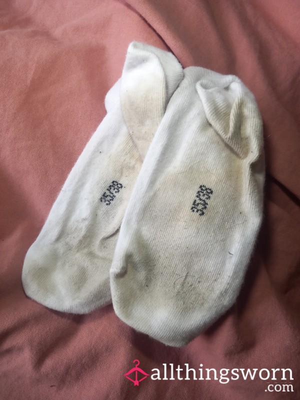 Cow print trainer socks. Worn for a full 24 hours, all day and all night in my bed....