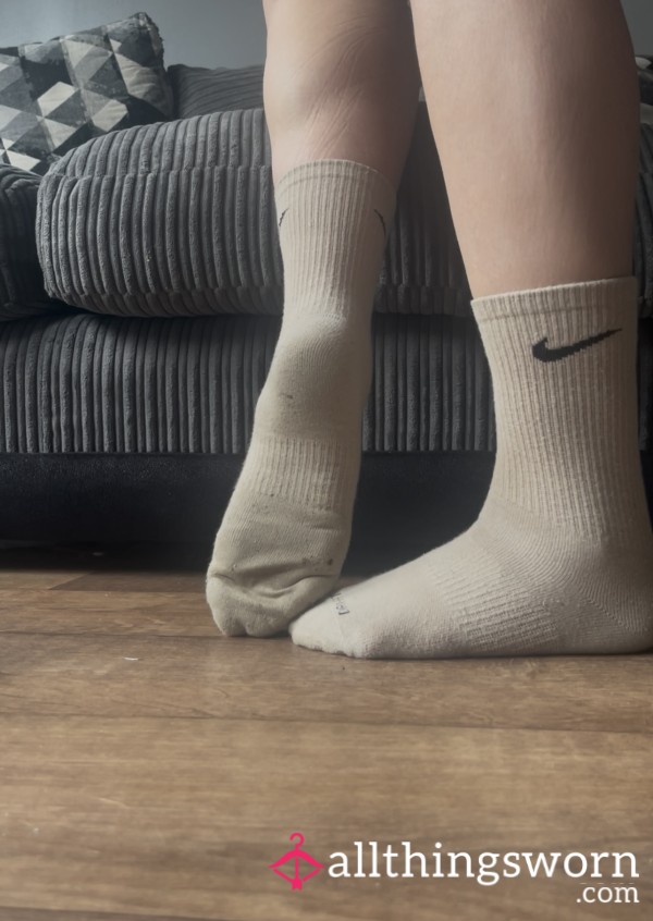 Blue and white stripes worn ankle trainer socks worn on a size 3 shoe sweaty smelly little feet...