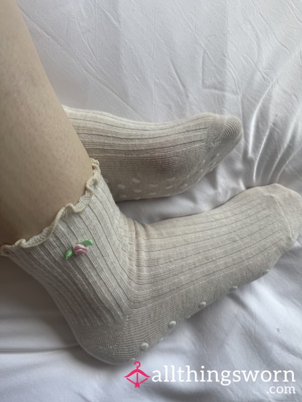 SINGLE White Hanes Ankle Sock covered (inside and out) in lipstick of various shades of red.