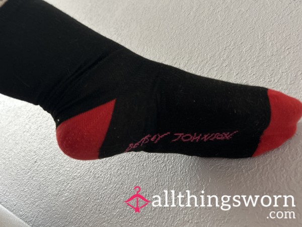 BETSEY JOHNSON BLACK SOCKS W RED HEEL/TOE
