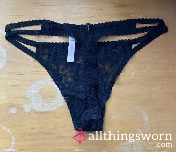 Black Bow backed Victoria Secret panties 48 hour wear Free US shipping Vacuum sealed Wear pictures...