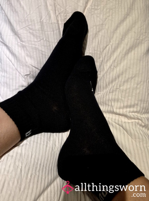 Black Puma socks, freshly worn upon order, packed discreetly.