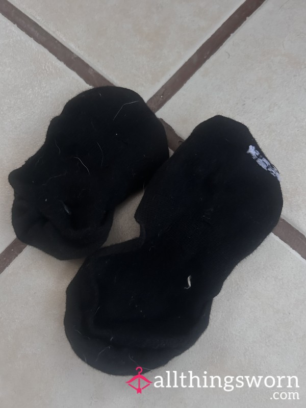 Black trainer socks, worn for one day including pole dancing so sweaty!