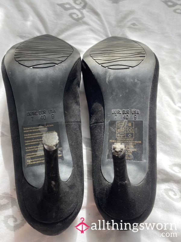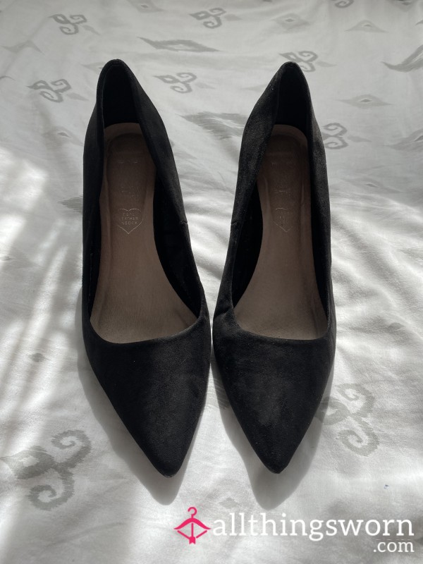 My black court show style high heels are up for grabs! They’ve been worn during long work day, to job interviews, on nights out, to events - they’ve been so well worn, one of the heels is missing it’s nib!