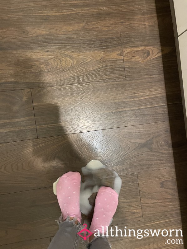 Eigentlich waren sie nur dazu da, meine Füße warmzuhalten. Doch dann ist ein kleiner Unfall pa**iert – süsse Muttermilch, der sich über den Boden ergoss. Keine Taschentücher in der Nähe, nur meine Socken. Also mussten sie herhalten, ganz weich, ganz saugfähig. Jetzt tragen sie nicht nur die Spuren meiner Schritte, sondern auch diesen sehr intimen Abdruck – ein Geheimnis aus Wärme, Nähe und Körperlichkeit. 💖👑🧦
