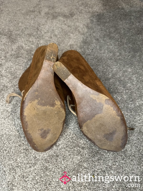 s**y black suede stilettos π Visible toe prints. Brand: Zara. Size EU 38. Gold hardware, zipper at heel. βοΈ...