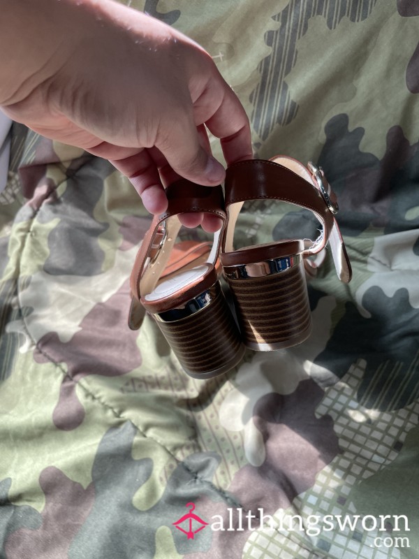 Beautiful barely there heels, well worn and loved...