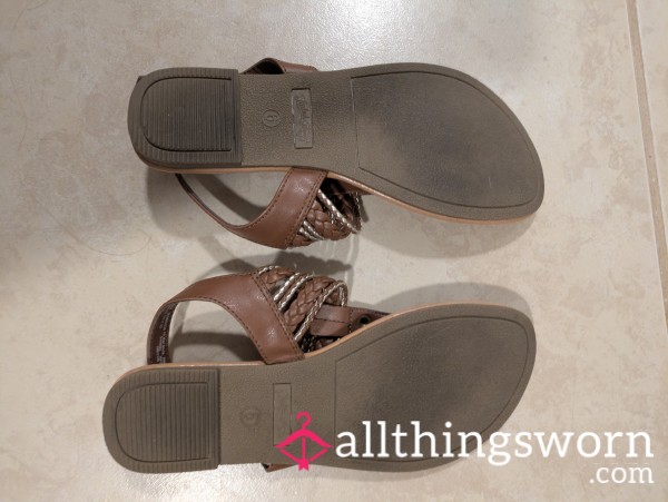 These black studded sandals have taken countless barefoot steps and I just slipped one off like you caught...