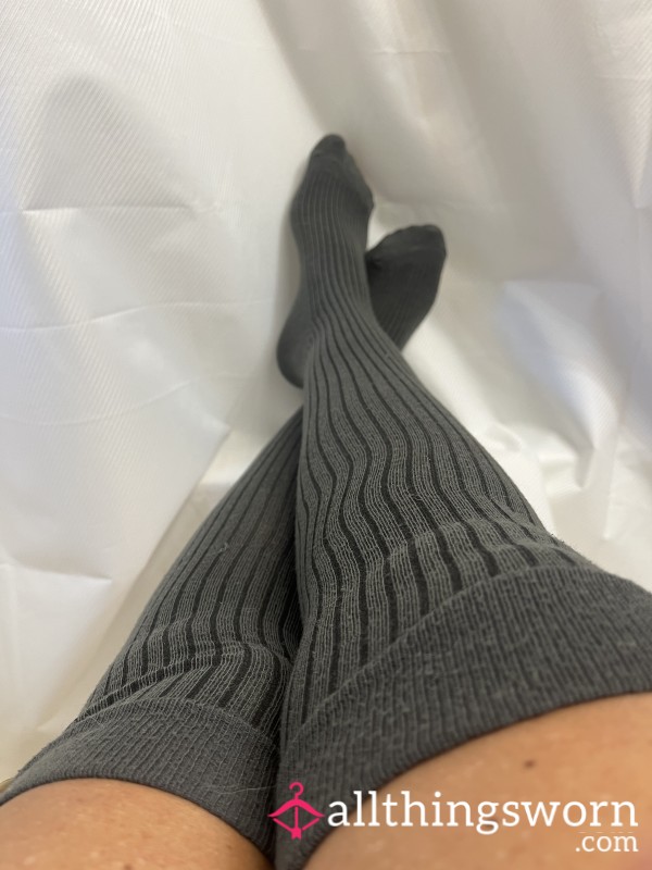 Once thicker to keep my legs warm under my boots , they are over 12 years old ,you can say they are truly well worn, still have a lot of life left 💋 maybe you can keep them hydrated with something special, so they last longer . Two days wear , proof of wear and domestic shipping included.