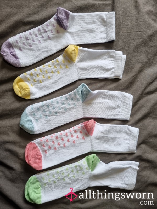 The cutest bright colour socks with heart print and colour clock heel/toe