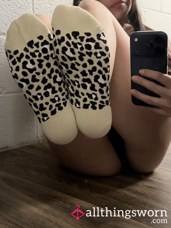 Stained with sweat, well-worn grey and white gym socks that I can wear to the gym as many...