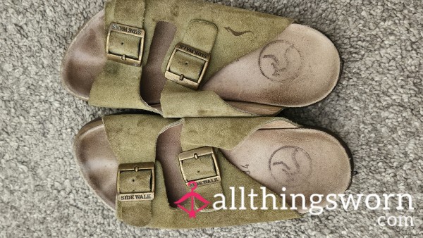 Esse chinelo de camurça carrega a marca real dos meus pés, impressa com o tempo, o calor e o uso.