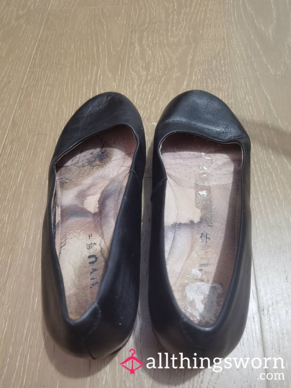 Uniform sketcher trainers in black , visibly worn and smelly. Worn on my feet all day during my...