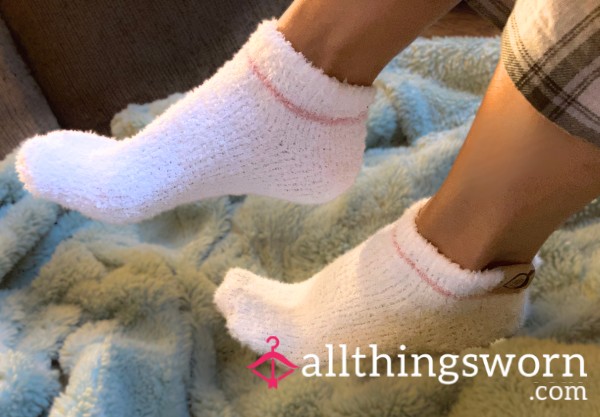 This listing is for a pair of ankle height smiley face fuzzy socksπ₯° Price listed includes one full...