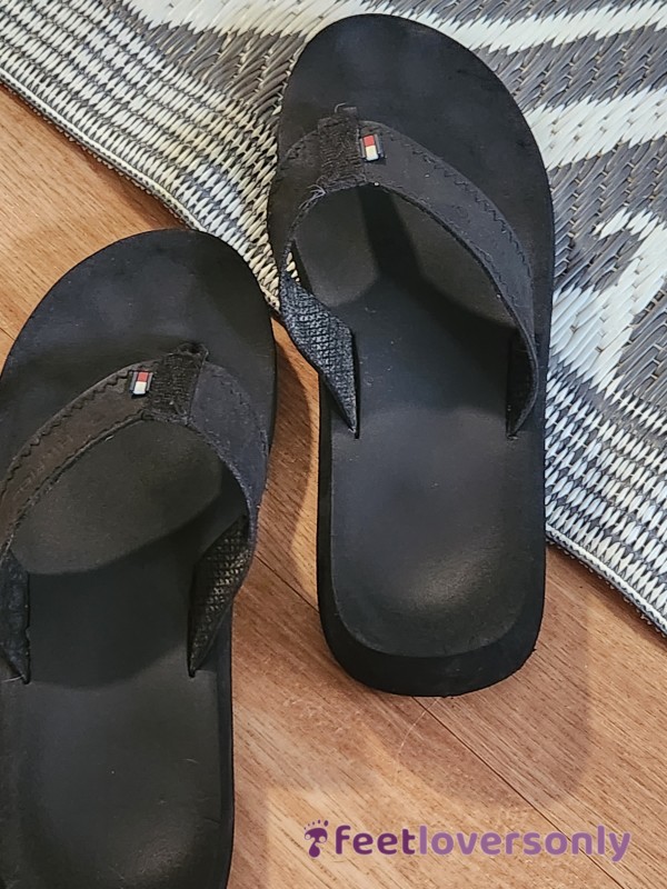 I have a pair of Tommy Hilfiger flip flops. They are very worn in and super loved. Great foot prints and smell. These are my current every day wear pair but they are almost ready so snatch up whole you can. These are now ready to be shipped 🤗