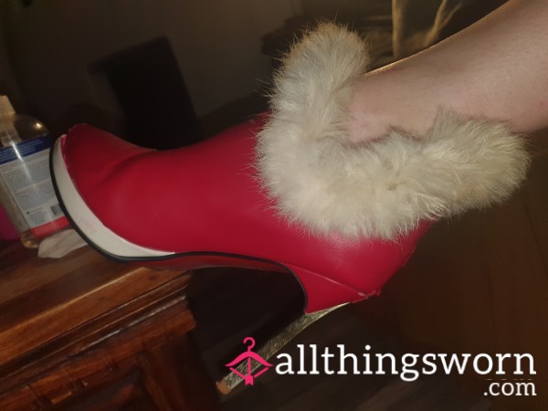 5 photos of me and my feet wearing the shoes you just purchesed Red, leather woman stiletto high heels, 11 cm heel, size 8 , customized made for special eceation