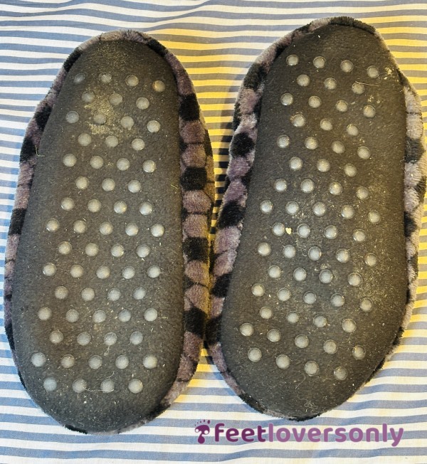 3 years old very well loved slippers. Worn around my house. Sweaty and stinky...