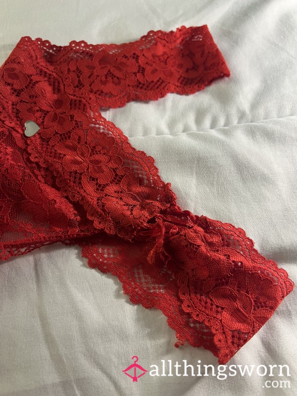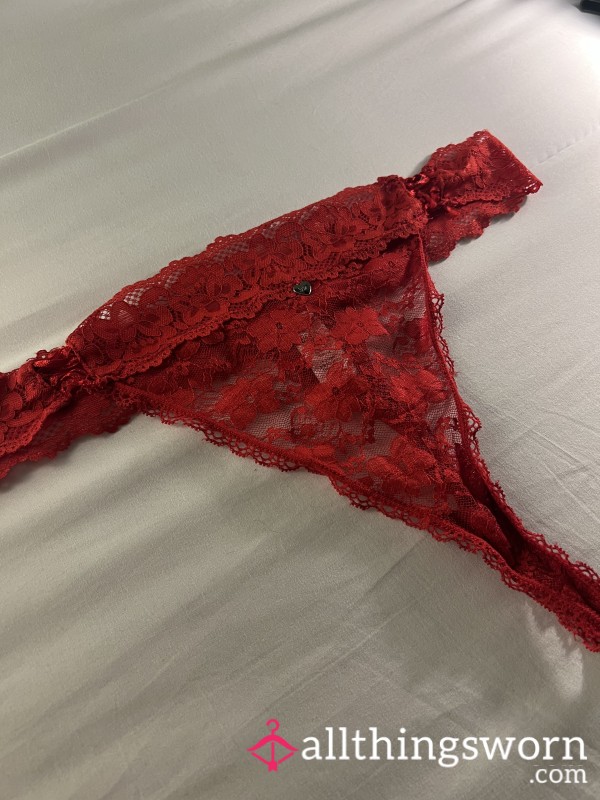 These s**y red mesh panties with black lace trim hug in all the right places. Soft and stretchy....