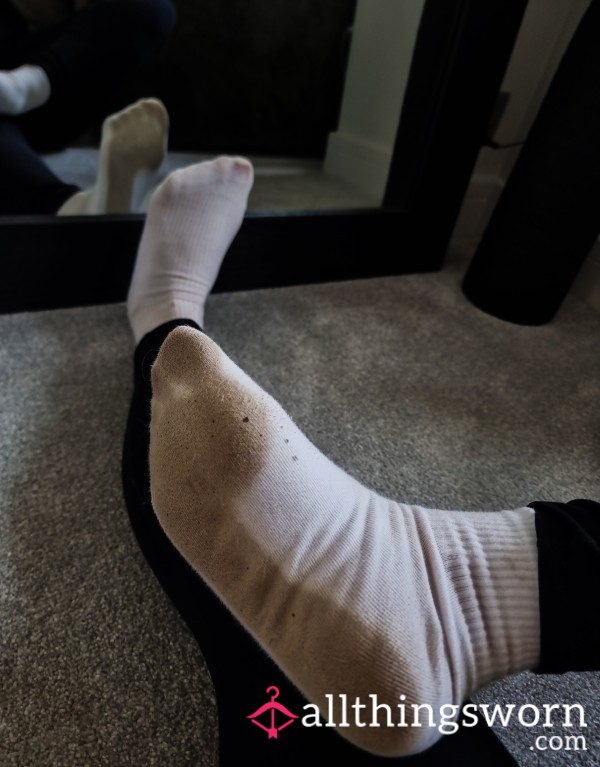 White cotton crew socks were brand new when I put them on, hard days graft, now look at them 😜🙈