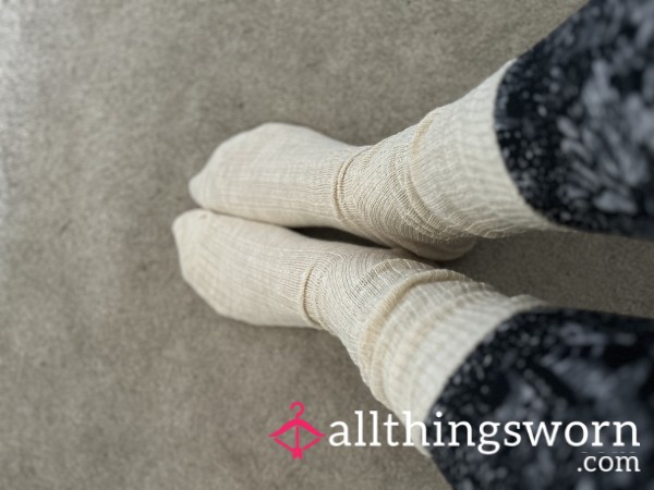 Gym socks white in colour Worn for 2 days With holes in Get them while they are stinky...