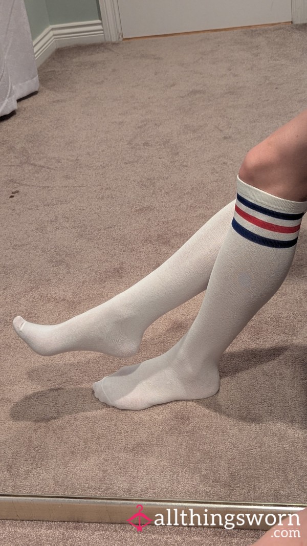 There’s something so intoxicating about these cheeky striped socks on a Goddess like me, delicate and stretched tight...