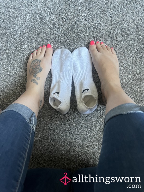 I frequently hit the Gym, do yoga, walk my dogs with NO SOCKS on in my shoes😋 I sweat a lot if that’s what you like 💦 I’m always wearing s**y items under my clothes 👖 too! Bras, panties, thongs, socks, nylons, thigh highs, what’s your fancy? Message if you’re looking for something specific! I just might have it in my home closet not listed yet 😉