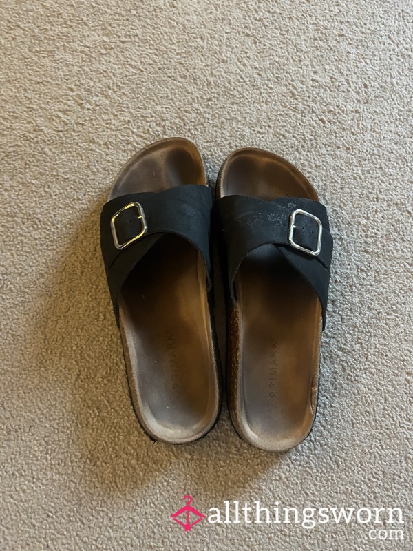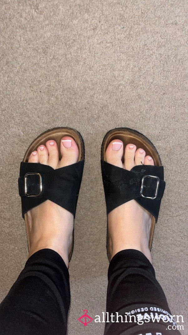 Very well loved flip flops with my infamous soles and toes imprinted....