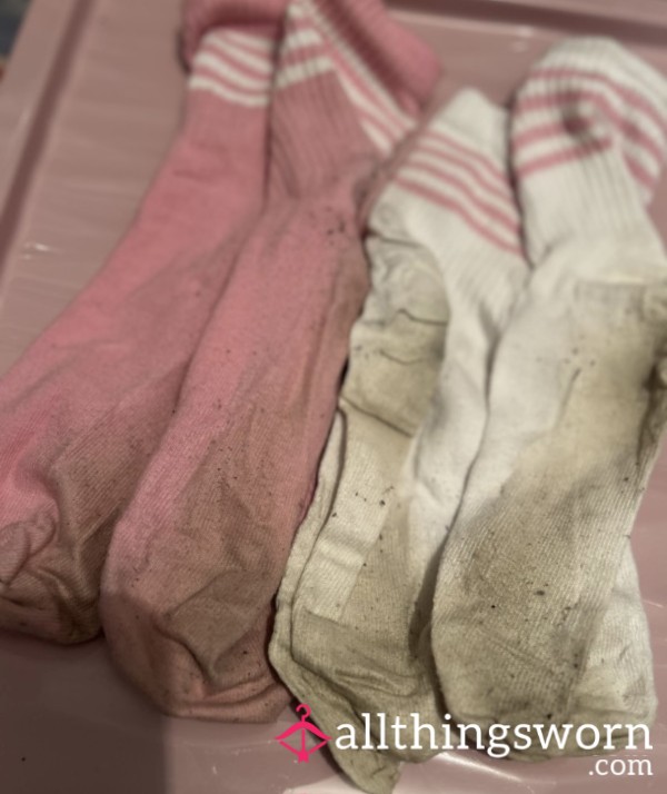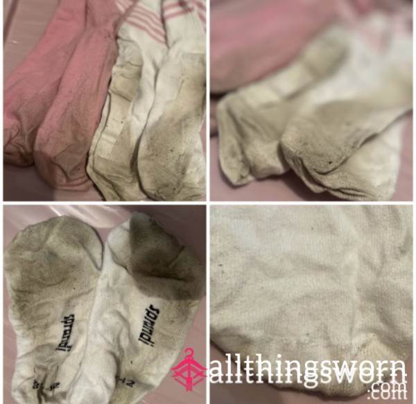 Sweaty white gym ankle socks.. I trained in these without any shoes walking around on the dirty floor🦶🏽you...