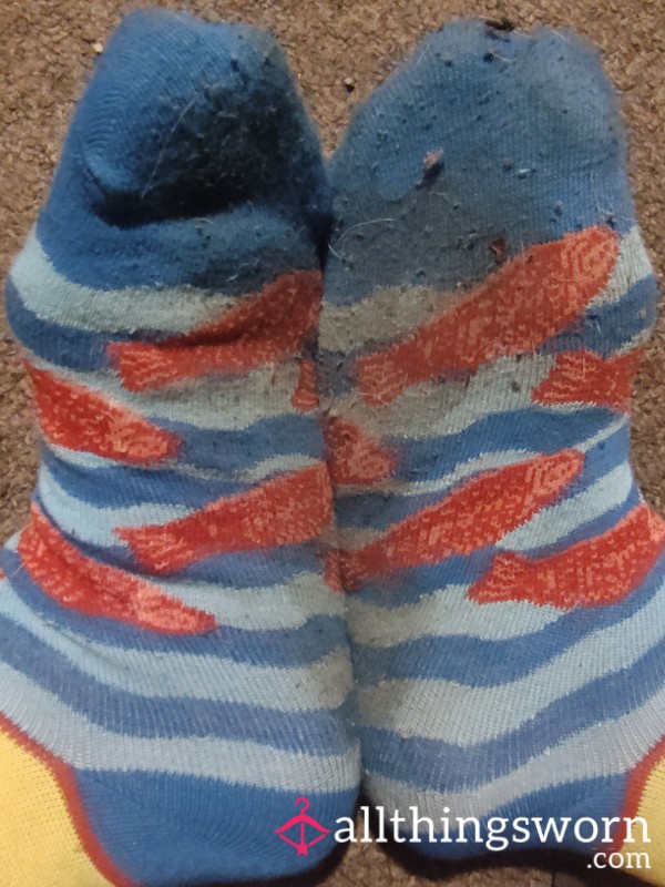 old worn fuzzy Dotted socks