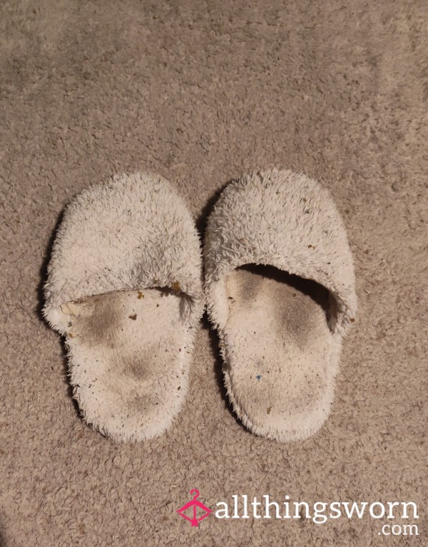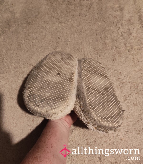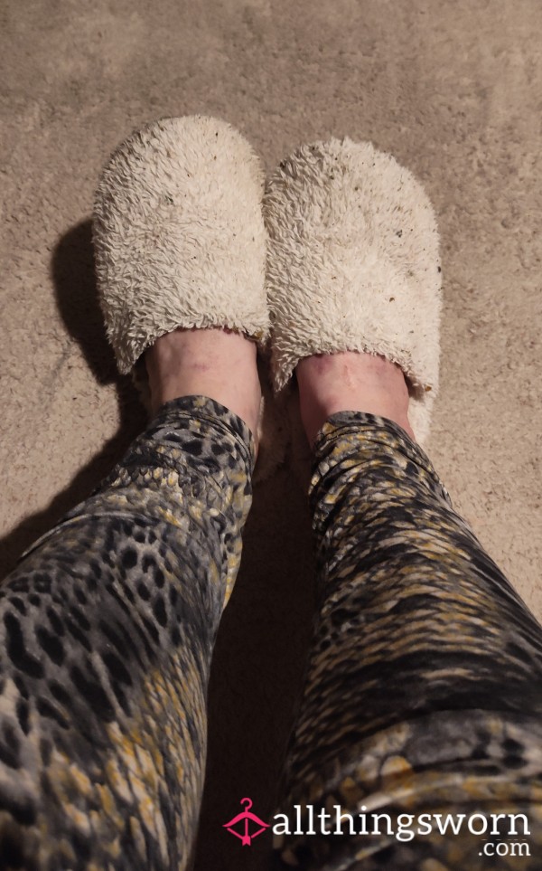 These calf-length slippers have black fleece lining and rubber bottoms.