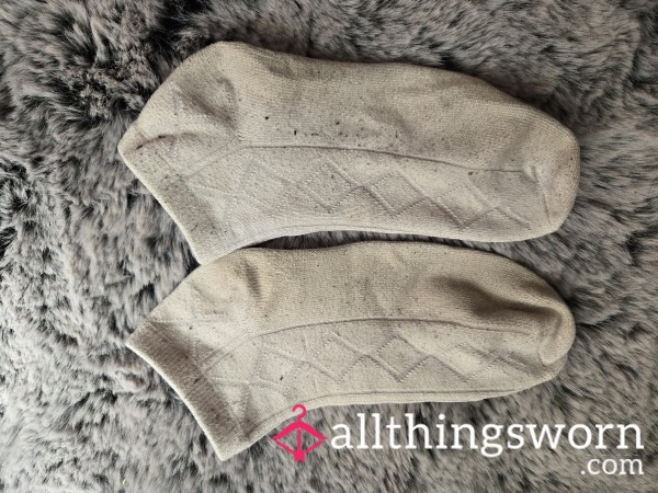 These dirty white diamond knit socks have received years of wear and are ready to be enjoyed by any collector! Discreetly packaged and worn to order. Treat yourself to a little lesbian love ❤️