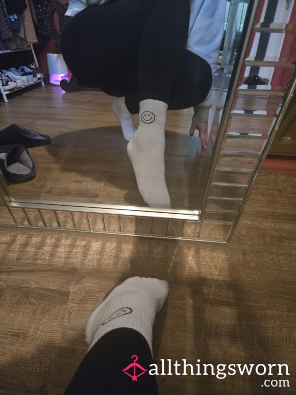 Starting with fresh white unworn socks. How dirty will they get. I’ll be cleaning my house, going shopping...