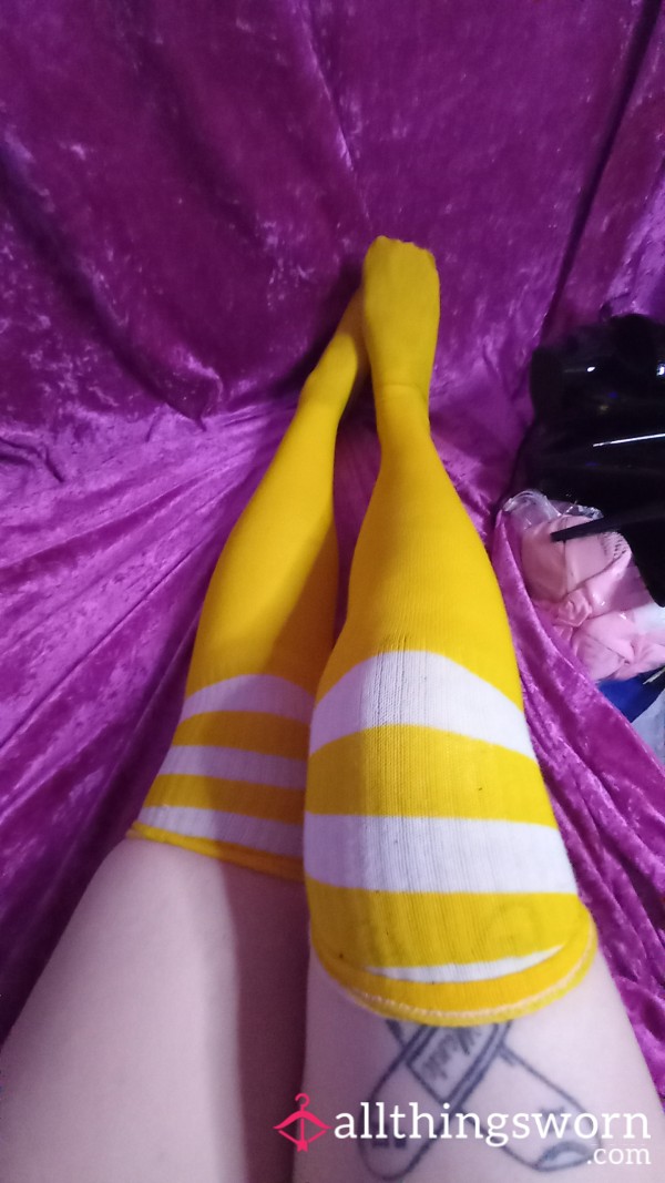 Knee high cotton socks holding the scent of my feminine feet in ๐