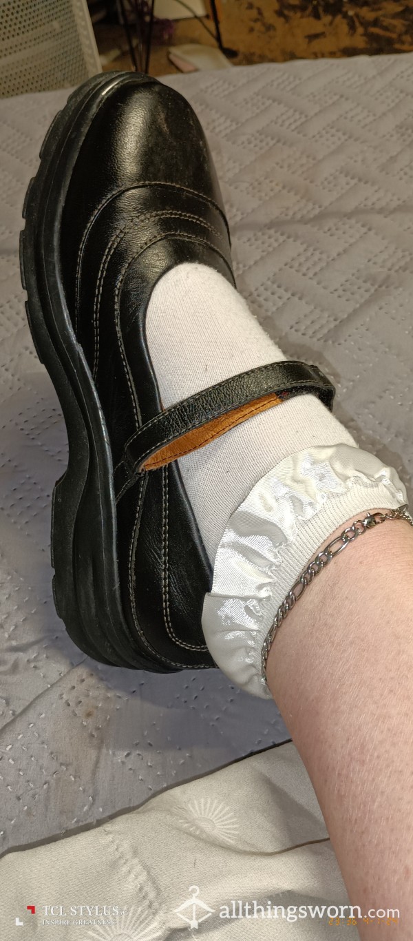 Size 9 EEE leather Dr. Comfort Mary Jane's. Removable thick insoles. I've used these for role play and custom videos and are so comfortable. I paid $149.00 for them. They are ready to find their next kinky home. Price includes shipping