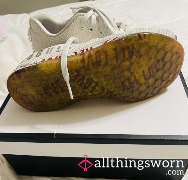 They’ve handled every squat, every burn, every drop of effort. The insides are deeply worn, scented with strength and stamina, and ready for someone who craves that raw, workout intensity.