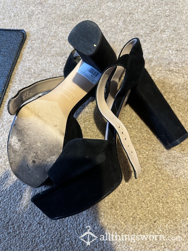 Well loved high heels, feet marks left on the sole of heels, worn on many night outs...