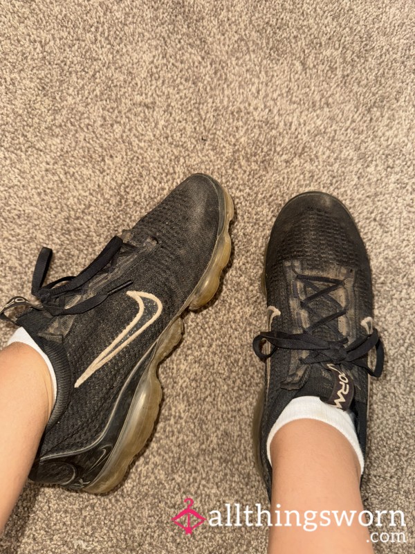These work trainers have trudged through every sc*mmy flat I’ve cleaned soaked in pi*s-stained carpets, smeared with c*m from some cheating husband’s late night “business calls,” and caked in the dried snot of toddlers who cried while their broke dads watched me through the door.