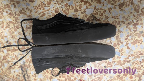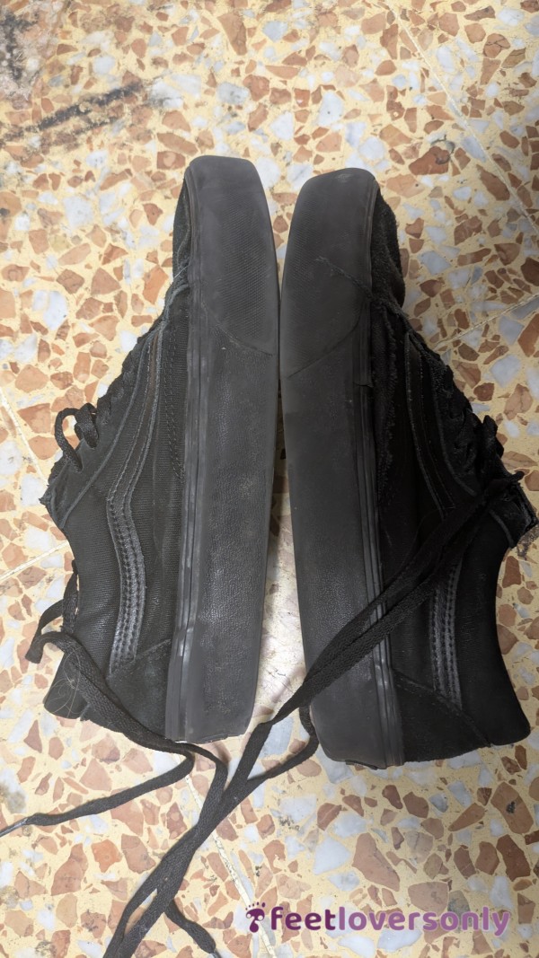 Extremely worn black vans. Torn canvas and well worn insoles! Extremely stinky Worn for work