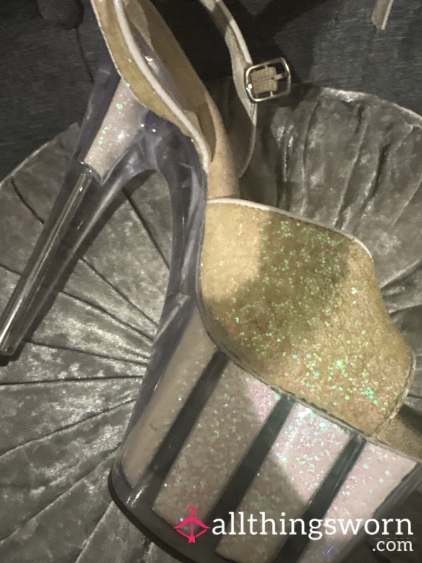 These gorgeous high heel shoes have been worn to the max! Sweaty dirty feet and never cleaned π...