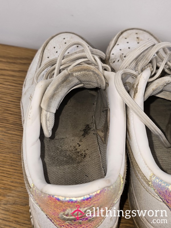 Very well worn, used, smelly dirty gym shoes!