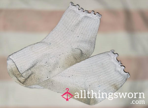 Super sweaty/stinky grey hanes ankle socks. Worn for 3 days in sneakers and home around the house...