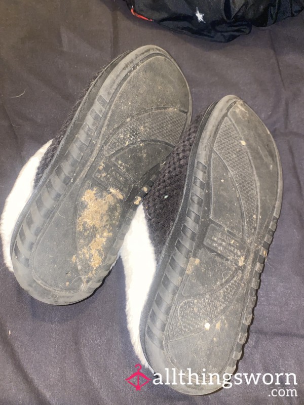 Extremely worn slippers, worn every day for 2+ years with bare feet, really sweaty and smelly for Any...