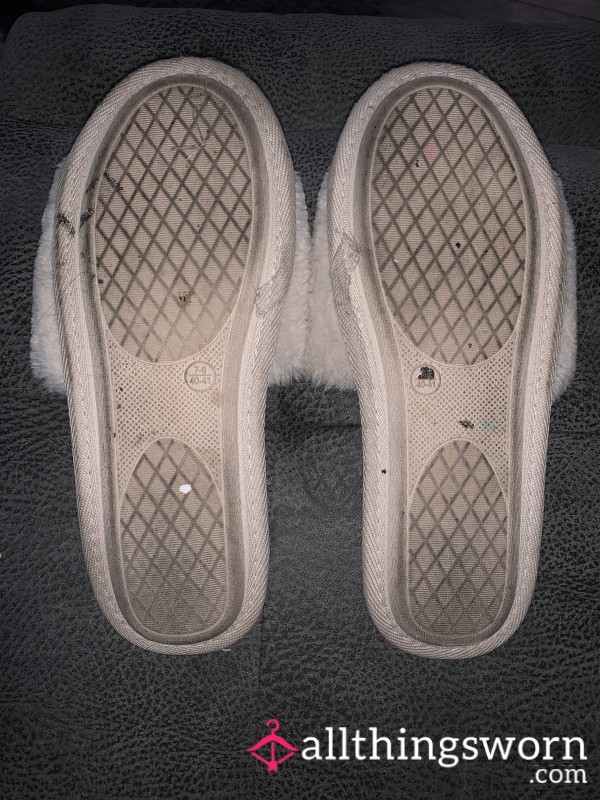 Owned for over a year or two. Very dirty, thin pretty slippers. As you can see the bottoms...