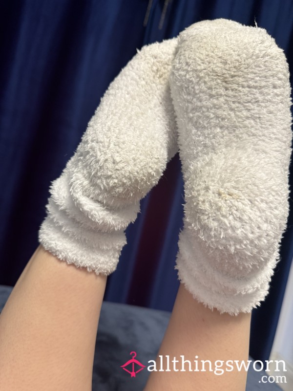 b*m white socks...worn 2days in sneakers and around the house...dirty inside and out......