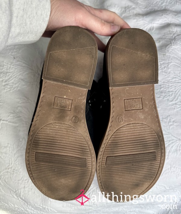 A pair of my older, VERY worn tan flats.