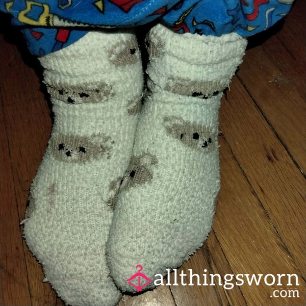Socks that have been worn in bed and all day around the house, very sweaty and smelly, don't...